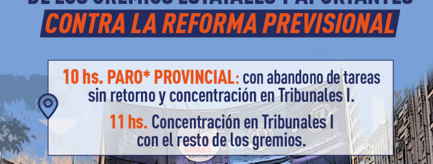 🕚 10 hs. – Paro provincial: con abandono de tareas sin retorno y concentración en Tribunales I (El paro comienza a las 10 hs. del día 20/02 en toda la provincia. Finaliza a las 24 hs. del dia 20/02 o a la culminación del turno donde exista trabajo nocturno).