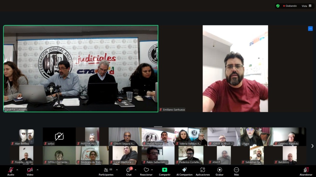 El Secretario de Capacitación de la FJA y Secretario General de AJER Entre Ríos, José Segura, agregó: “En este importante encuentro pudimos consolidar algo que veníamos advirtiendo: las y los judiciales junto con las y los estatales de Cajas no transferidas a la Nación estamos en conflictos gremiales graves por nuestros aportes jubilatorios, y eso afecta al bolsillo de las y los trabajadores y jubilados. En Entre Ríos ya nos subieron los aportes personales y ahora estamos en lucha también porque no nos saquen el 82% móvil. Es momento de unir fuerzas a nivel nacional para exigir la devolución de los fondos jubilatorios de la Nación a las provincias.”