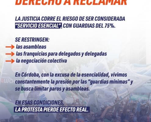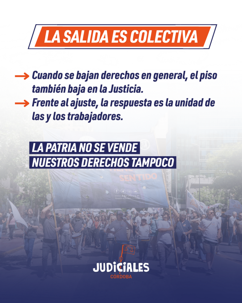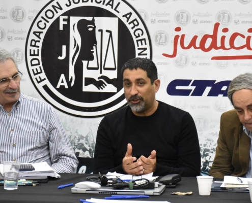 El Secretario Adjunto de la FJA y Secretario General de AGEPJ Federico Cortelletti expresó: “La acción configura una gran esfuerzo de coordinación y resistencia ante el ajuste al que se está sometiendo a los judiciales en particular y estatales en general que por ejemplo en Córdoba ha derivado en una nefasta ley, mal denominada de “Equidad Previsional” que lisa y llanamente es un recorte salarial que afecta a trabajadores, trabajadoras, jubiladas y jubilados. Las y los judiciales cordobeses junto con el resto de los estatales no vamos a descansar hasta ver eliminada esa ley y por eso hemos articulado acciones gremiales, judiciales y políticas. Este encuentro es parte de esa resistencia que ya toma relevancia nacional. “