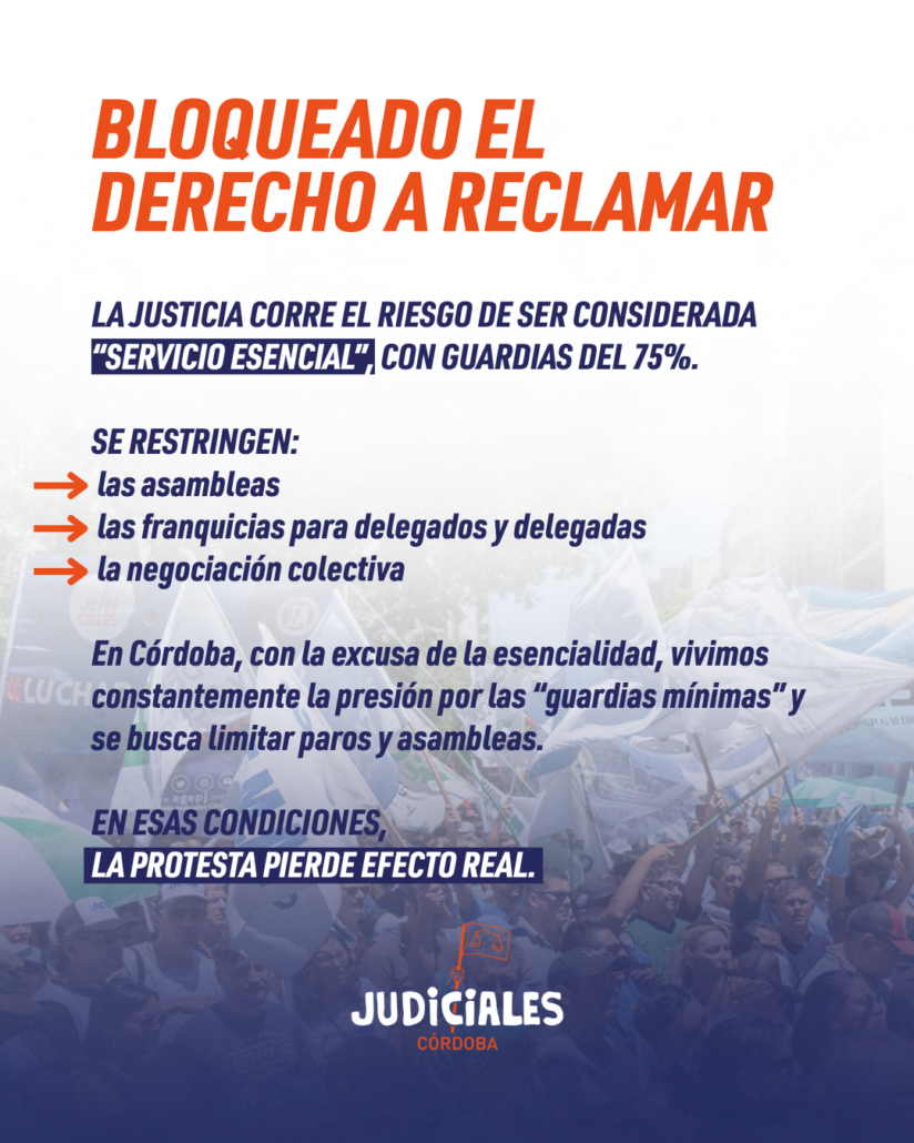 Estuvieron presentes, además de Córdoba, los gremios judiciales AJER de Entre Ríos, AJB de Buenos Aires, AJUCHA de Chaco, la Asociación Judicial de Catamarca, SITRAJUCH de Chubut, SITRAJ Corrientes, AJUFSA de Formosa, SITRAJLP de La Pampa, Judiciales de Misiones, SEJUN de Neuquén, Judiciales de Santa Cruz, Judiciales de Tierra del Fuego, además de los sindicatos cuyas cajas son nacionales como AEJBA de Caba, SITRAJUR de Rio Negro, Judiciales de San Juan, SIJUPU de San Luis y Judiciales de Santiago del Estero. Todos ellos están nucleados en la FJA que reúne a 23 gremios judiciales de todo el país.