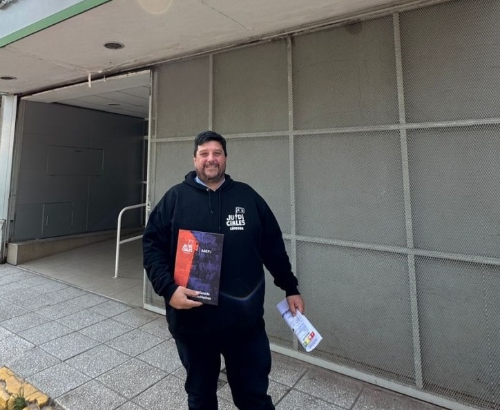Junto a las compañeras y compañeros trabajadores de la sede estuvo su delegado adjunto Daniel Flores, y la Comisión Directiva provincial de AGEPJ representada por el Secretario General, Federico Cortelletti; el Secretario del Interior, Pablo Sabas; el Secretario Gremial, Adrián Valán; la Secretaria de Capacitación, Daniela Bergessio y el Secretario de Previsión Social Daniel Ceballos.