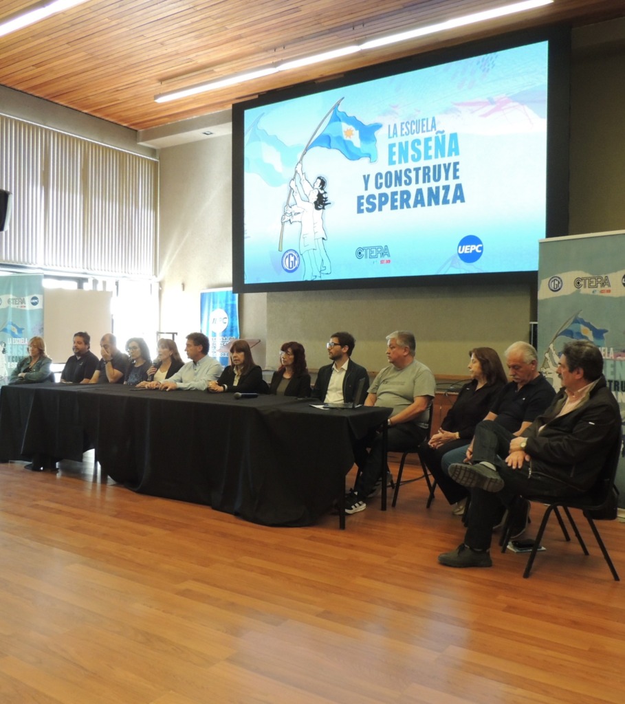 Durante la Conferencia de Prensa el Secretario General de UEPC, Roberto Cristalli afirmó: “En esta jornada nacional de protesta vamos a visibilizar nuestro rechazo al presupuesto presentado por el gobierno nacional. Toda la sociedad se tiene que poner al frente de esta lucha”. Además, agregó: “Lo mismo que hicimos con el presupuesto educativo para las universidades, lo tenemos que hacer para la educación pública, porque lo que está consolidando el presupuesto presentado por el Gobierno Nacional es el corrimiento del rol del Estado como garante del servicio educativo en todo el país, y básicamente lo que hace este presupuesto en el artículo 30 es anular todos los artículos por los cuales se garantiza el financiamiento del sistema educativo a nivel nacional”.